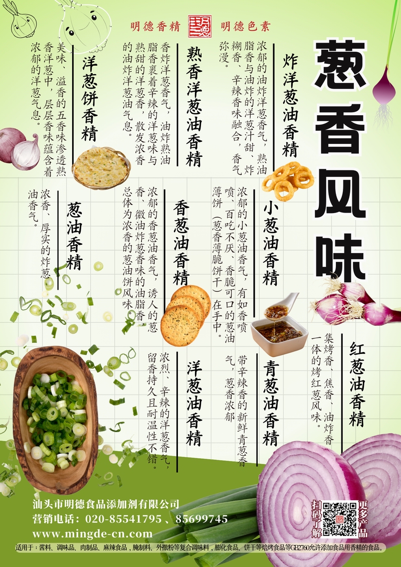 明德蔥香風(fēng)味香精 | 油香蔥韻 覆蓋多場景 汕頭市明德食品添加劑有限公司推出的蔥香風(fēng)味香精系列,涵蓋熟香洋蔥油香精、炸洋蔥油香精、小蔥油香精、香蔥油香精、洋蔥油香精、青蔥油香精、紅蔥油香精、洋蔥餅香精、蔥油香精等多種品類。產(chǎn)品呈現(xiàn)真實(shí)蔥香、洋蔥甜香與炸香特征,留香穩(wěn)定持久,適用于醬料、復(fù)合調(diào)味、肉制品、焙烤以及休閑食品等B端應(yīng)用。